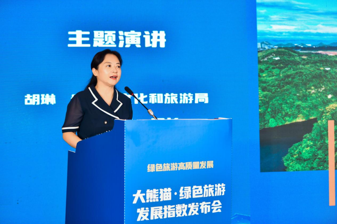 贵阳市文化和旅游局党组书记、局长胡琳作了题为“‘爽爽’为贵阳绿色旅游代言”的主题演讲,分享了“爽爽贵阳”城市品牌的运营实践,贵阳围绕“爽”字,深入挖掘贵阳绿色旅游资源,从爽身、爽心、爽眼、爽口、爽购、爽游六个维度出发,不断丰富“爽爽贵阳”的内涵,不断将绿水青山的“颜值”转化为文旅开展的“价值”,并提出探索乡村旅游绿色开展、探索城市旅游绿色创新、探索户外旅游绿色趋势、探索人文旅游绿色实践的四大举措。
